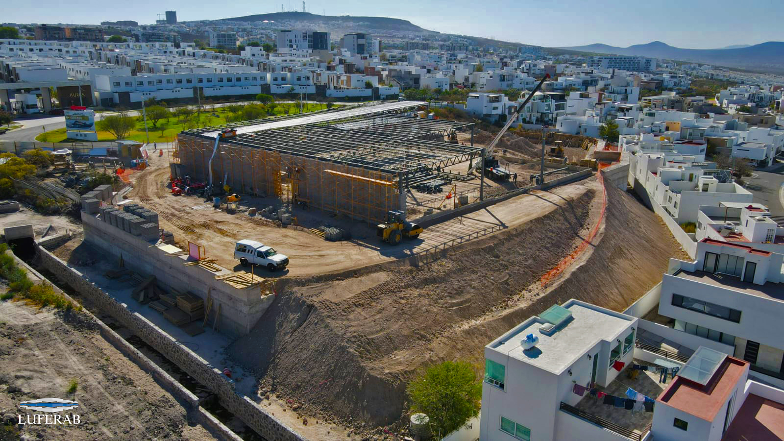 Walmart Express, Zibatá. Querétaro Walmart Express, Zibatá. Querétaro Construcción de cisterna contra incendios Extensión de laboratorios Proyecto Asignado Construcción de nueva tienda Walmart Express. Proceso de nivelado y delimitación de áreas Colado y cimbrado de muros Armado de estructura metálica y montaje de Joist Fijado de laminas en techumbre Nivelado y cimbrado de muros perimetrales Conoce Más Recopilación de evidencias filmográficas Walmart Express Zibatá, Querétaro